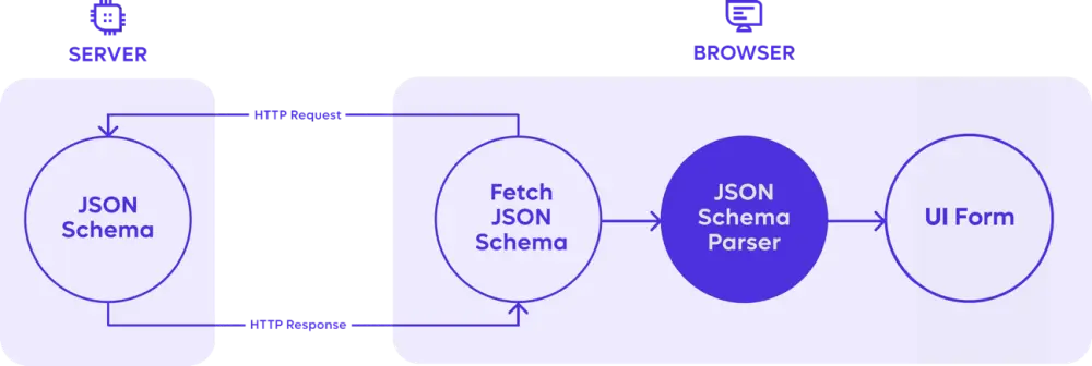Diagram of how JSON Schema integrates with the server and client.